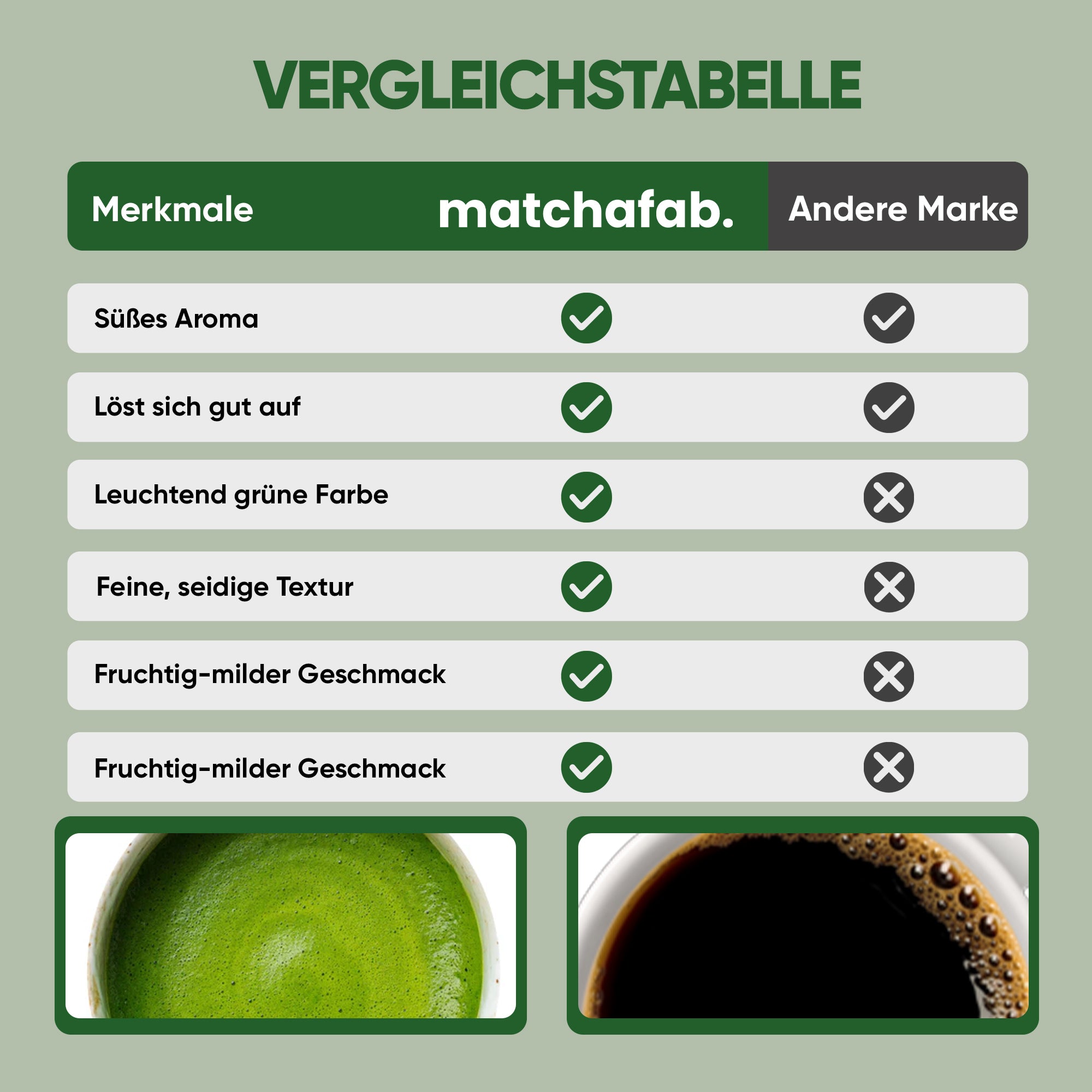 Matcha liefert langanhaltende Energie ganz ohne Koffein-Crash. Ideal für deine Morgenroutine, als Coffee-Replacement oder beim Fokus-Boosten im Alltag.