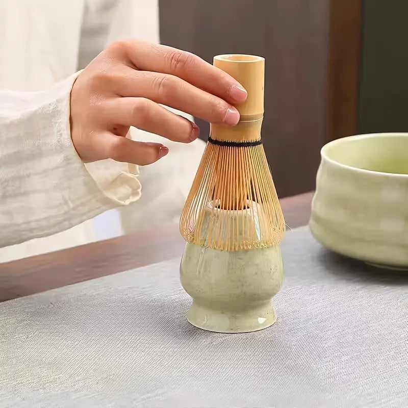 Der Besenhalter aus Keramik bewahrt die Form deines Chasen nach der Anwendung und verlängert seine Lebensdauer. Gleichzeitig dient er als stilvolles Accessoire in deiner Matcha-Ecke – ein Zeichen von Wertschätzung für das traditionelle Handwerk.