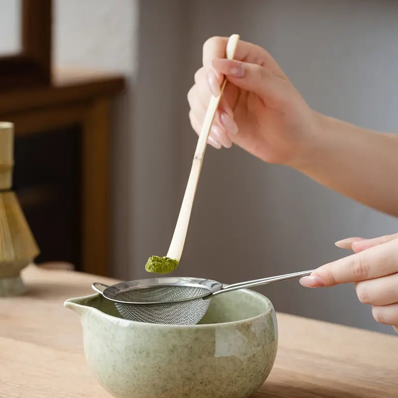 Ein feines Sieb sorgt dafür, dass der Matcha von möglichen Klümpchen befreit wird. Dadurch erhältst du eine besonders feine und samtige Textur, die nicht nur das Aufschlagen erleichtert, sondern auch den Geschmack veredelt.