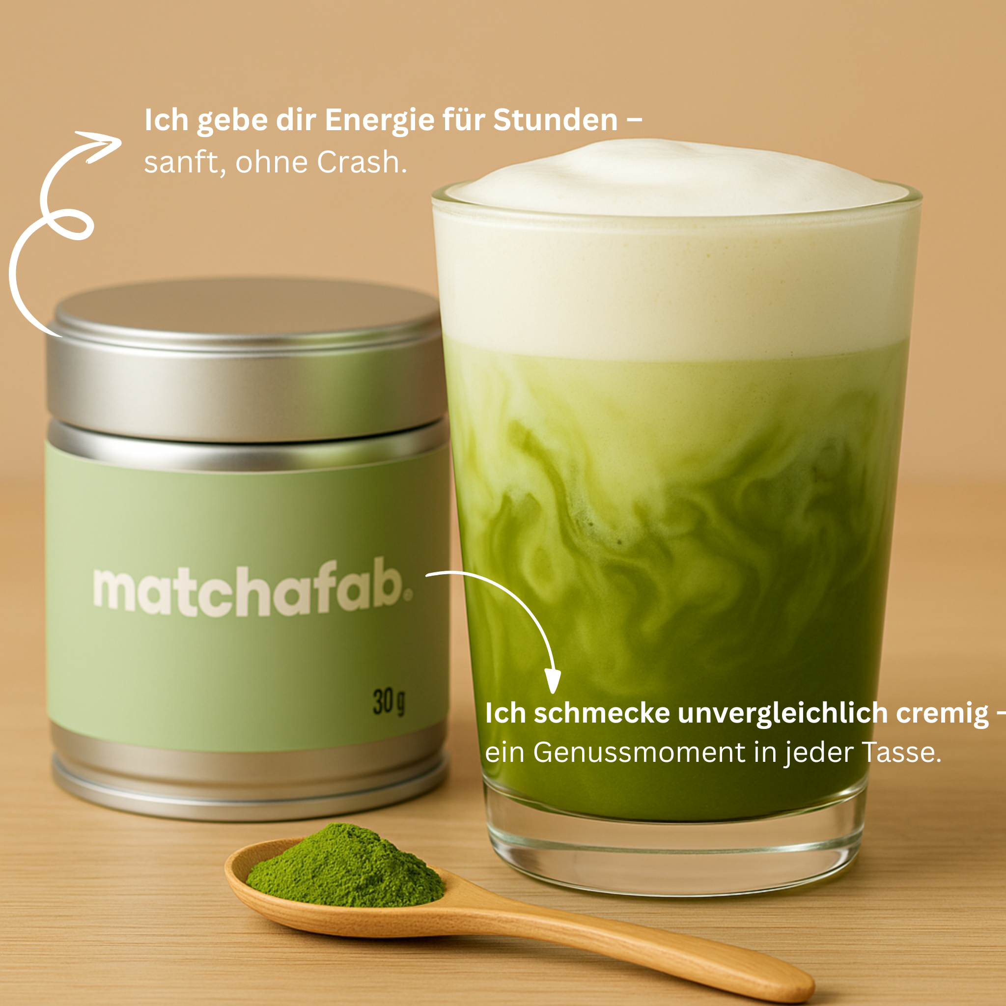 Matcha liefert langanhaltende Energie ganz ohne Koffein-Crash. Ideal für deine Morgenroutine, als Coffee-Replacement oder beim Fokus-Boosten im Alltag.